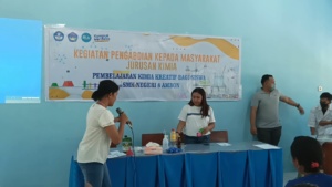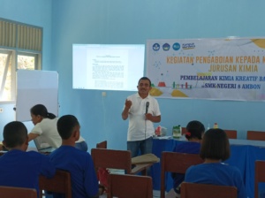 Jurusan Kimia FMIPA Unpatti kembali menunjukan komitmen dalam menjalankan dharma pengabdian kepada masyarakat merupakan perwujudan kontribusi nyata ilmu kimia bagi masyarakat. Kegiatan pengabdian yang dilaksanakan di SMK Negeri 8 Ambon kali ini berlangsung pada 12 Mei 2022 dengan mengusung tema besar “Demo Sains dan Pembelajaran Kimia Kreatif”. Dari tema ini, salah satu materi kegiatan yang dibawakan adalah pembelajaran kimia kreatif bagi siswa SMK Negeri 8 Ambon. Perlu ditambahkan juga bahwa SMK Negeri 8 Ambon merupakan sekolah kejuruan yang berfokus pada bidang perikanan.