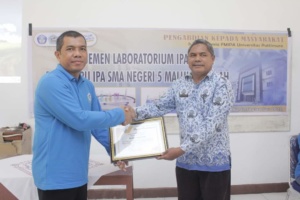 Pada tanggal 17 September 2022, telah dilakukan kegiatan pengabdian masyarakat tentang manajemen laboratorium oleh staf dosen kimia FMIPA Unpatti di SMA N 5 Maluku Tengah. kegiatan ini dibuka dengan sambutan kepala sekolah SMA N 5 Maluku tengah dan ketua jurusan Kimia. Dengan adanya kegiatan ini, diharapkan dapat meningkatkan pemahaman guru IPA SMA N 5 Maluku Tengah tentang manajemen laboratorium dan dapat mengaplikasinnya dalam mengelola laboratorium IPA.