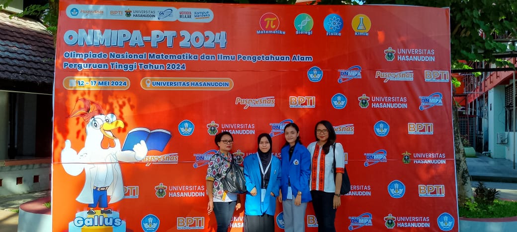 Ambon, 8 Juni 2024 – Mahasiswa Kimia dari Fakultas Matematika dan Ilmu Pengetahuan Alam (FMIPA) Universitas Pattimura (Unpatti), Dean Yona Elfa Leuwol, mewakili Universitas Pattimura dalam acara Olimpiade Nasional Matematika dan Ilmu Pengetahuan Alam Perguruan Tinggi (ONMIPA-PT) yang diadakan di Universitas Hasanuddin, Kota Makassar.