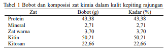 6. Ekstraksi dan karakterisasi kitosan dari kulit udang windu (Penaeus monodon) serta proses depolimerisasi kitosan dengan hidrogen peroksida berdasarkan variasi suhu pemanasan (2016)