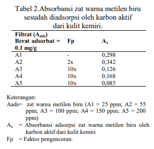 18. Kinetika adsorpsi zat warna metilen biru oleh karbon aktif dari kulit kemiri (Aleurites moluccana (L) Willd) (2018)