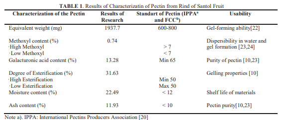 26. Extraction and Characterization of Pectin from Rind of Santol Fruit (Sandroricum koetjape Burm. F.) Merr (2021)