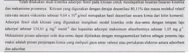 11. Studi kinetika adsorpsi fenol pada kitosan (2007)