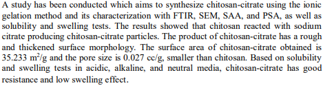 16. Synthesis and Characterization of Chitosan-Citrate Microparticle Using Ionic Gelation Methods (2022)