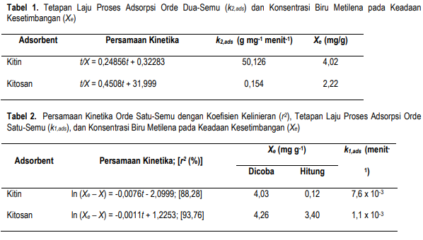 2. Studi kinetika adsorpsi biru metilena pada kitin dan kitosan (2012)