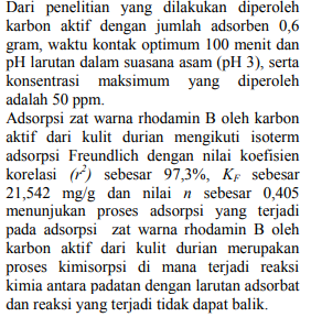 19. Adsorption of Rhodamine B Dye By Active Carbon From Durrian Shell (Durio zibethinus) (2014)