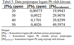 4. Isolasi kitosan dari tudung jamur merang (vollvariella volvaceae) dan aplikasinya sebagai absorben logam timbal (Pb) (2018)