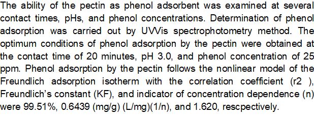 21. Utilization of Pectin Isolated from Orange Kisar (Citrus sp) peel as Phenol Adsorbent (2020)