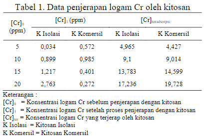 8. Isoterm Adsorpsi Ion Cr (III) Oleh Kitosan Hasil Isolasi Limbah Kepiting Rajungan dan Kitosan Komersil (2020)