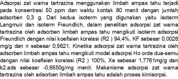 24. Kinetika Adsorpsi Zat Warna Tartrazina Menggunakan Limbah Ampas Tahu sebagai Adsorben (2020)