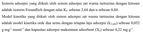 7. Kinetika adsorpsi zat warna tartrazina pada kitin dan kitosan (2018)