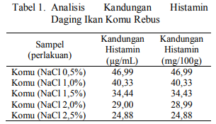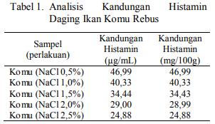 - Kandungan Histamin dalam Olahan Ikan Komu (Auxis thazard) yang Direbus dengan Variasi Konsentrasi NaCl (2014)