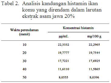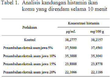 2. Pengaruh Ekstrak Asam Jawa (Tamarindus indica L.) Terhadap Kandungan Histamin Daging Ikan Komu (Auxis rochei) (2014)