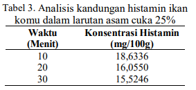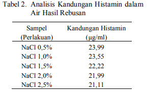 3. Histamine Content in Processed Bullet Tuna (Auxis thazard) Stew with Various Concentration of NaCl (2014)