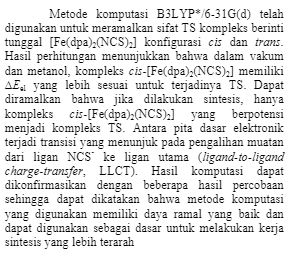 27. Studi Teoretis Struktur Elektronik dan Sifat Transisi Spin Kompleks [Fe (dpa) 2 (NCS) 2] (2010)