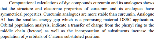 24. Computational Study of Curcumin and Its Analogues for Dye-Sensitized Solar Cell Application (2019)