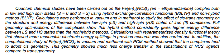 26. THEORETICAL STUDY OF THE [Fe (en) 2 (NCS) 2] COMPLEX WITH REPARAMETERIZED DENSITY FUNCTIONALS (2010)
