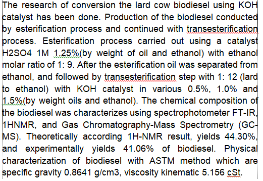 3. Utilisation Of KOH Catalyst In Ethanol To Covert The Lard Cow Into Biodiesel (2016)