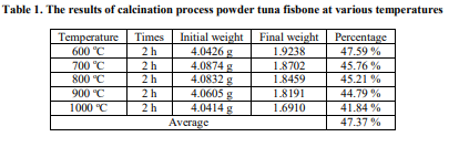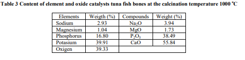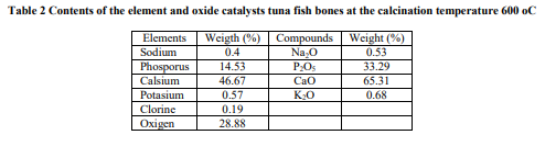 - Synthesis Ca3 (PO4) 2 from tuna fish bone and potential as a catalyst in the transesterification reaction for biodiesel production (2016)
