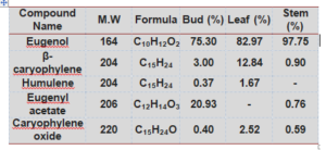 Chemical composition of bud, leaf and stem clove essential oils.